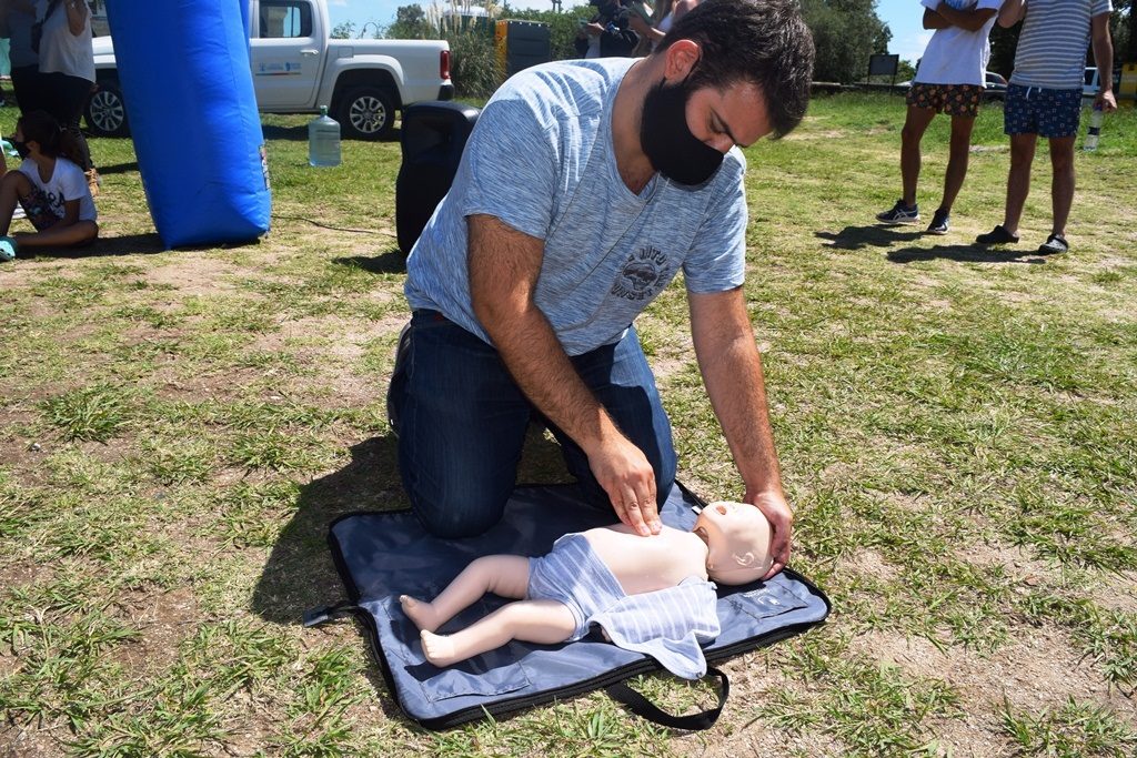 Posteriormente, se realizó una capacitación de Primeros Auxilios y RCP, en contexto COVID, a cargo de Martín Bustos, coordinador del grupo de Guardavidas, instancia de la que participaron chicos y jóvenes de distintas edades, junto a los funcionarios. Al finalizar, los presentes recibieron certificación oficial.
