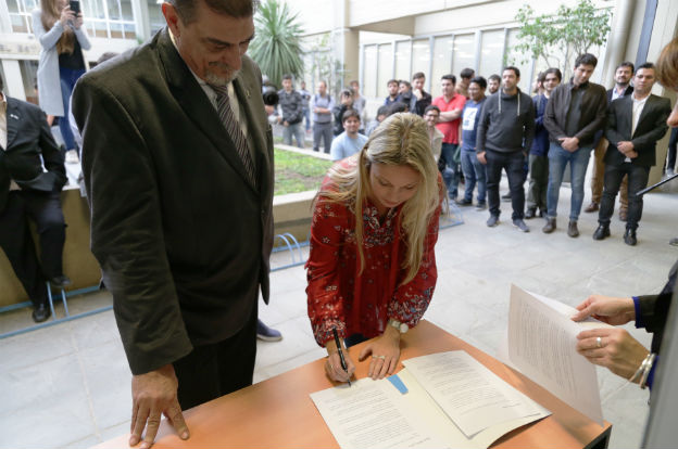 El evento tuvo lugar en el patio de los estudiantes donde, en primer lugar, se hizo la firma del convenio que da marco a la iniciativa. El acuerdo fue firmado por la presidenta de la Agencia, Julieta Rinaldi y el decano de la UTN-FRC, Rubén Soro.